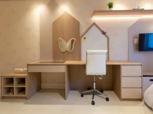 • When furnishing a child’s room with unfinished wood furniture, look for hardwoods like oak. Hardwood furniture is more durable and resistant. Plus, you can always repaint it, just be sure to use paint that’s suitable for children.